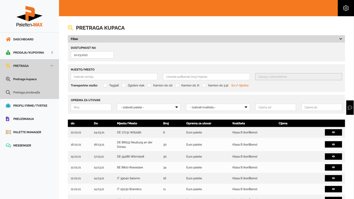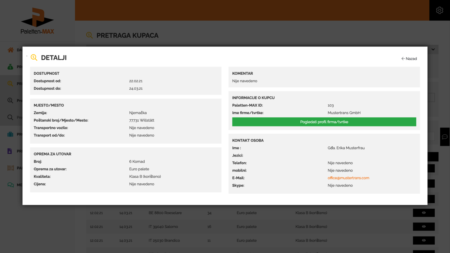 Nudimo Vam jednu neutralnu i neovisnu platformu za zamjenu paleta gdje možete kupiti ili prodati palete. U slučaju da ne želite javno stavljati vaše ponude, imate mogućnost da direktno stupite u kontakt s odgovarajućim kupcem ili prodavačem.